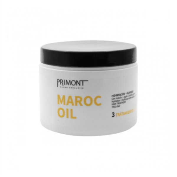 PRIMONT MAROC OIL TRATAMIENTO fue desarrollado con aceite puro de argan, hidrata, fortalece el cabello, lo nutre y revitaliza. Es rico en Vitamina E- cuya función es antioxidante, hidratante y es un excelente Anti-Age. Ayuda a cerrar las puntas y reduce la rotura de la fibra, para mantener un cabello sano, fuerte, suave y con abundante brillo.